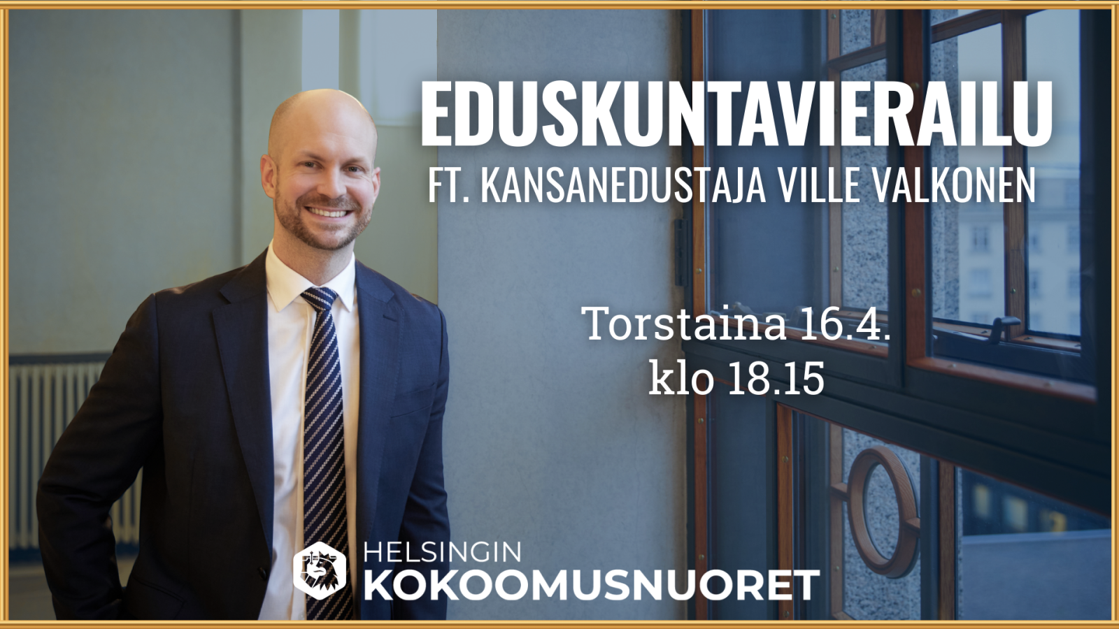 Tervetuloa Helsingin Kokoomusnuorten eduskuntavierailulle torstaina 16.4. klo 18.15 alkaen! Tällä kertaa meitä isännöi varsinaissuomalainen kansanedustaja Ville Valkonen, ja vierailun aiheena on talous & kasvu.