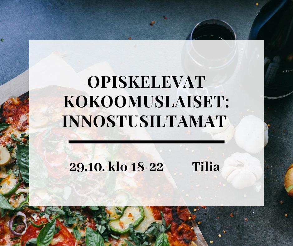 Täten Opiskelevat kokoomuslaiset järjestävät Innostusiltamat 29.10. klo 18 alkaen Tiliassa (Seminaarinkatu 15).